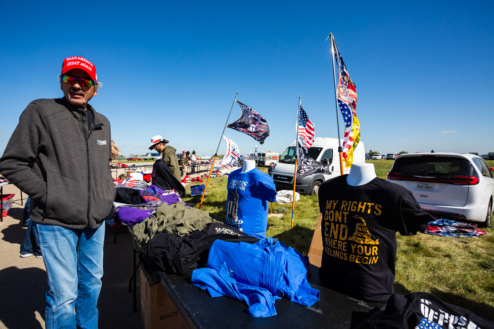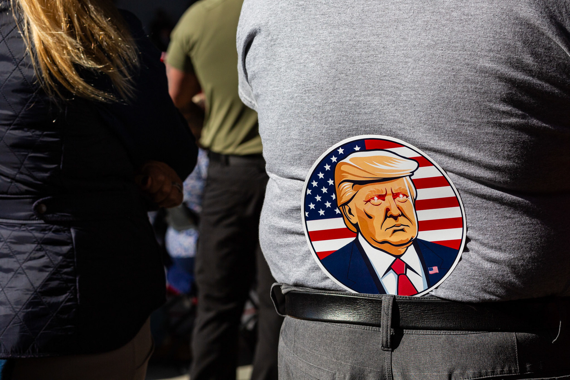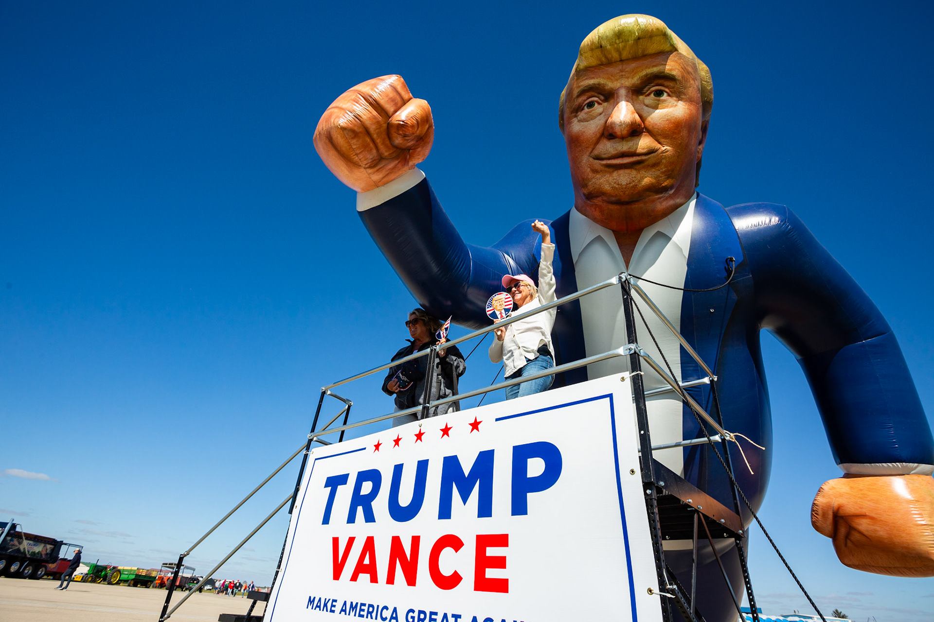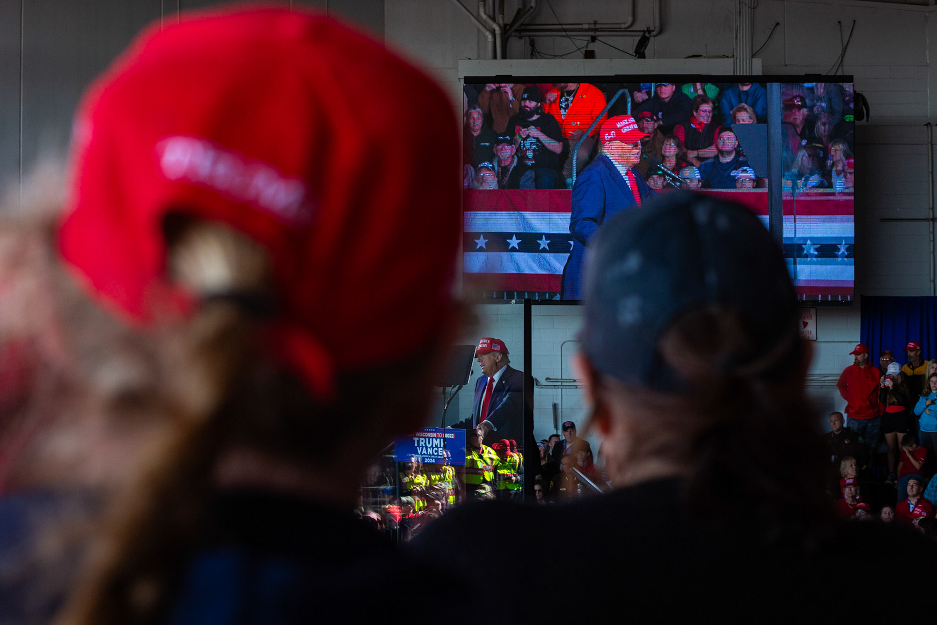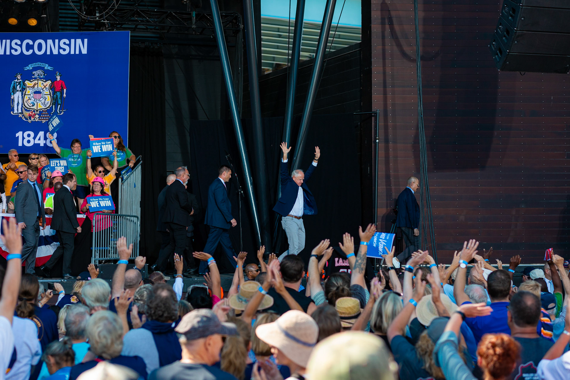 President Joe Biden delivers remarks on stage with two Milwaukee locals at the Department of Public Works Field Headquarters in Milwaukee, WI on October 8th, 2024. (Photo by Aidan DeStefano/Sipa USA)