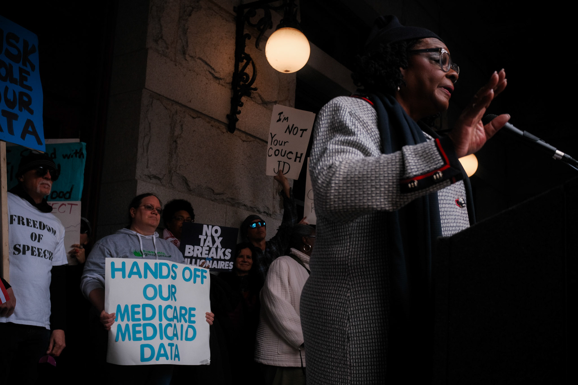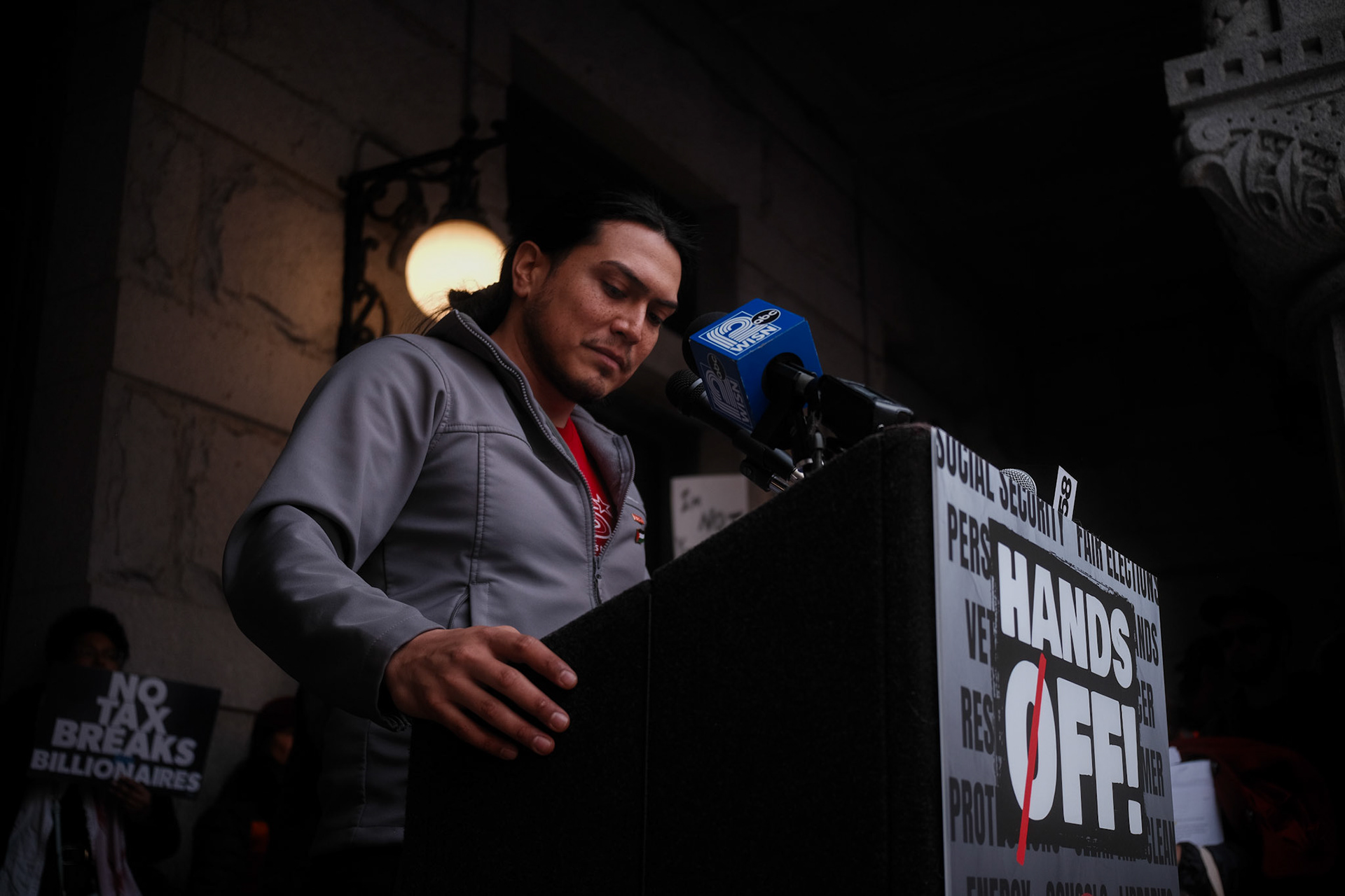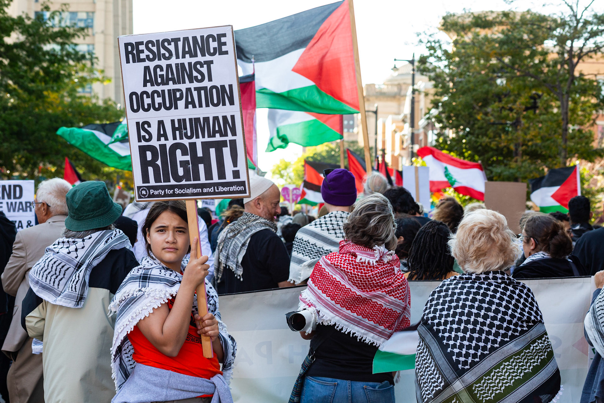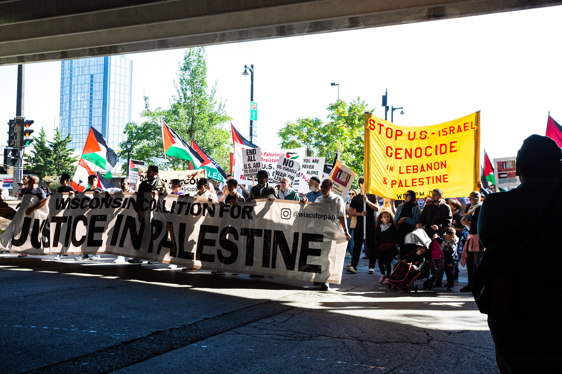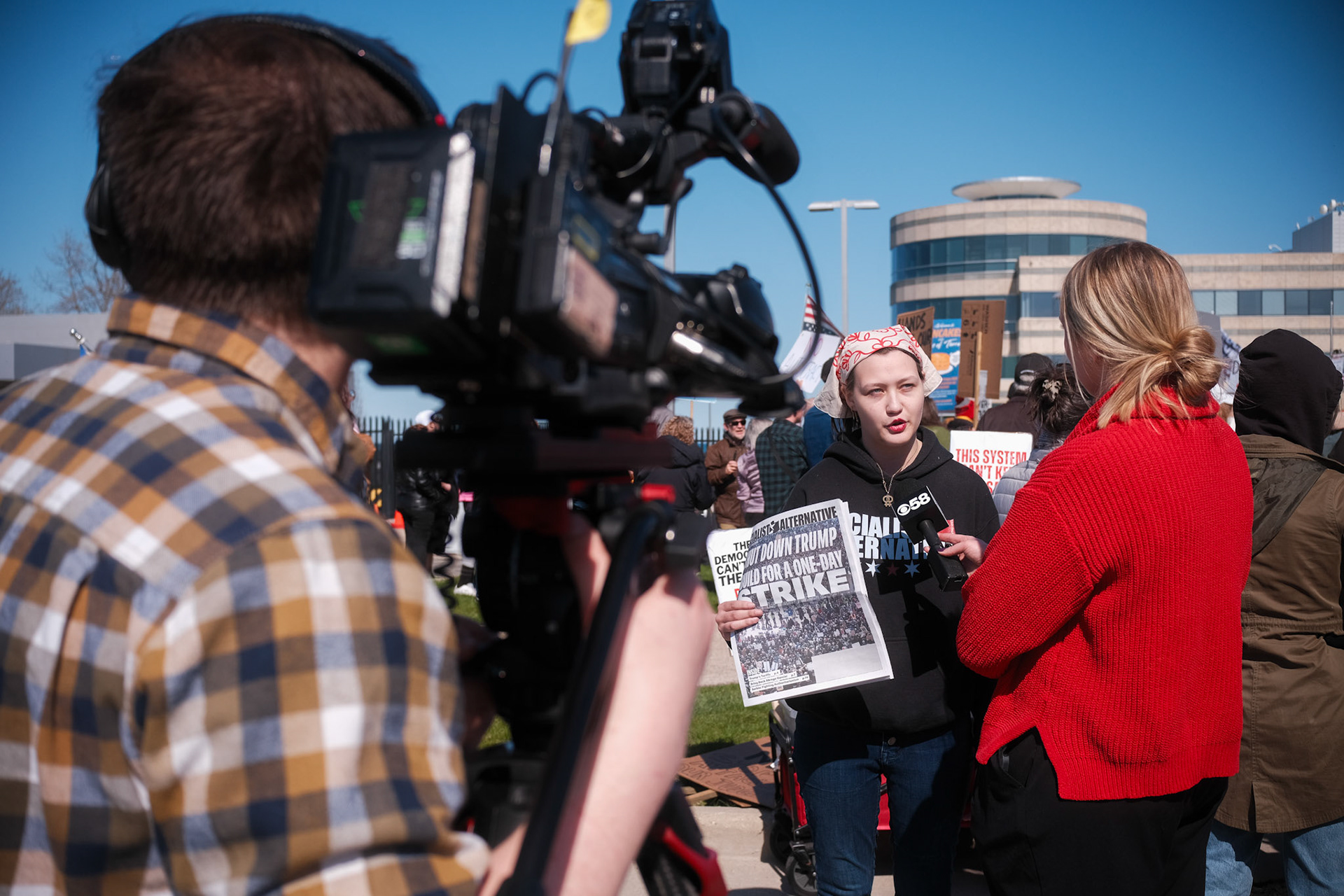 President Joe Biden delivers remarks on stage with two Milwaukee locals at the Department of Public Works Field Headquarters in Milwaukee, WI on October 8th, 2024. (Photo by Aidan DeStefano/Sipa USA)