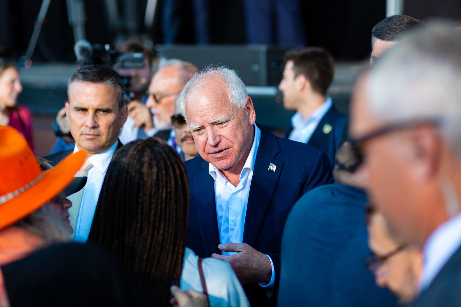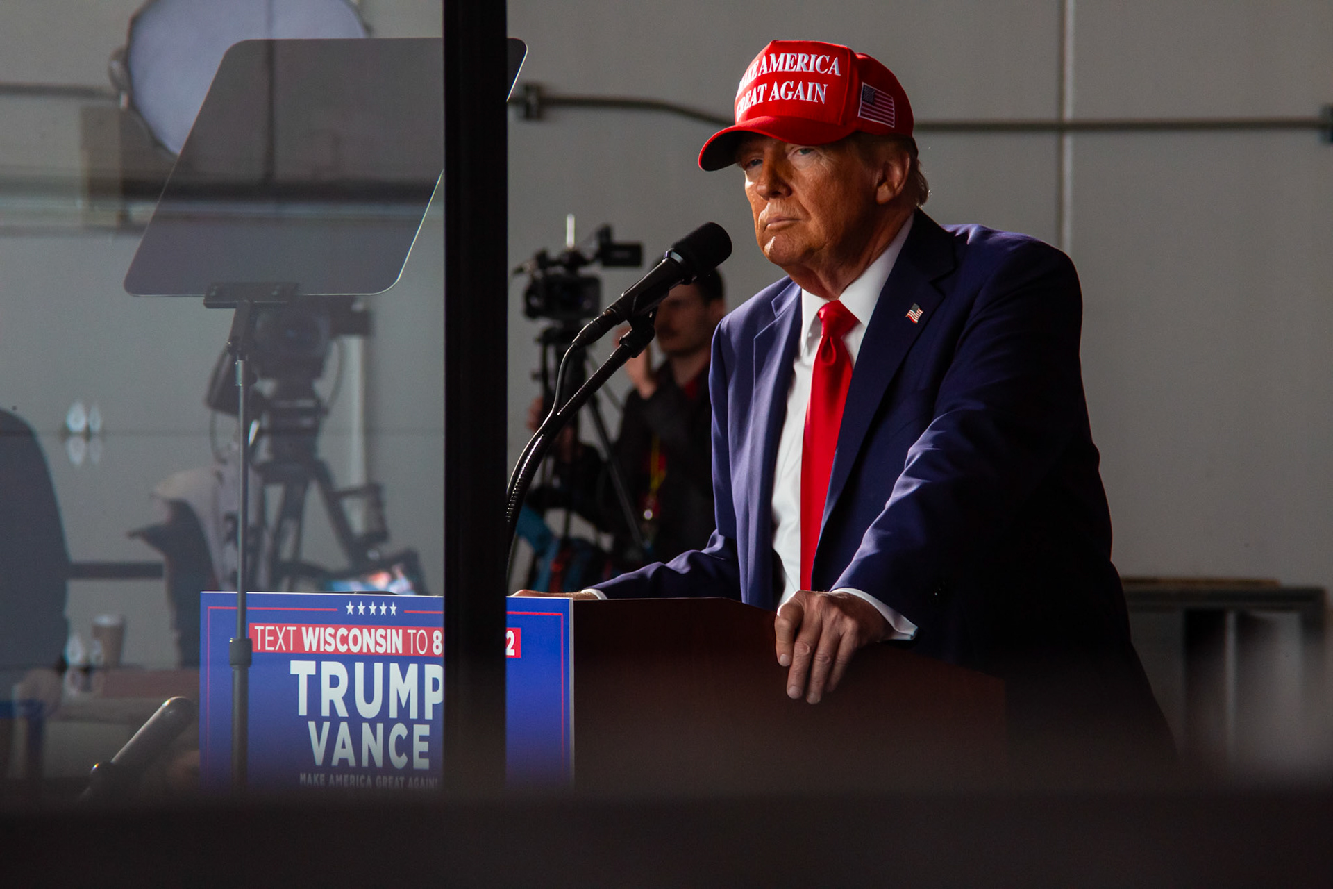 President Joe Biden delivers remarks on stage at the Department of Public Works Field Headquarters in Milwaukee, WI on October 8th, 2024. (Photo by Aidan DeStefano/Sipa USA)